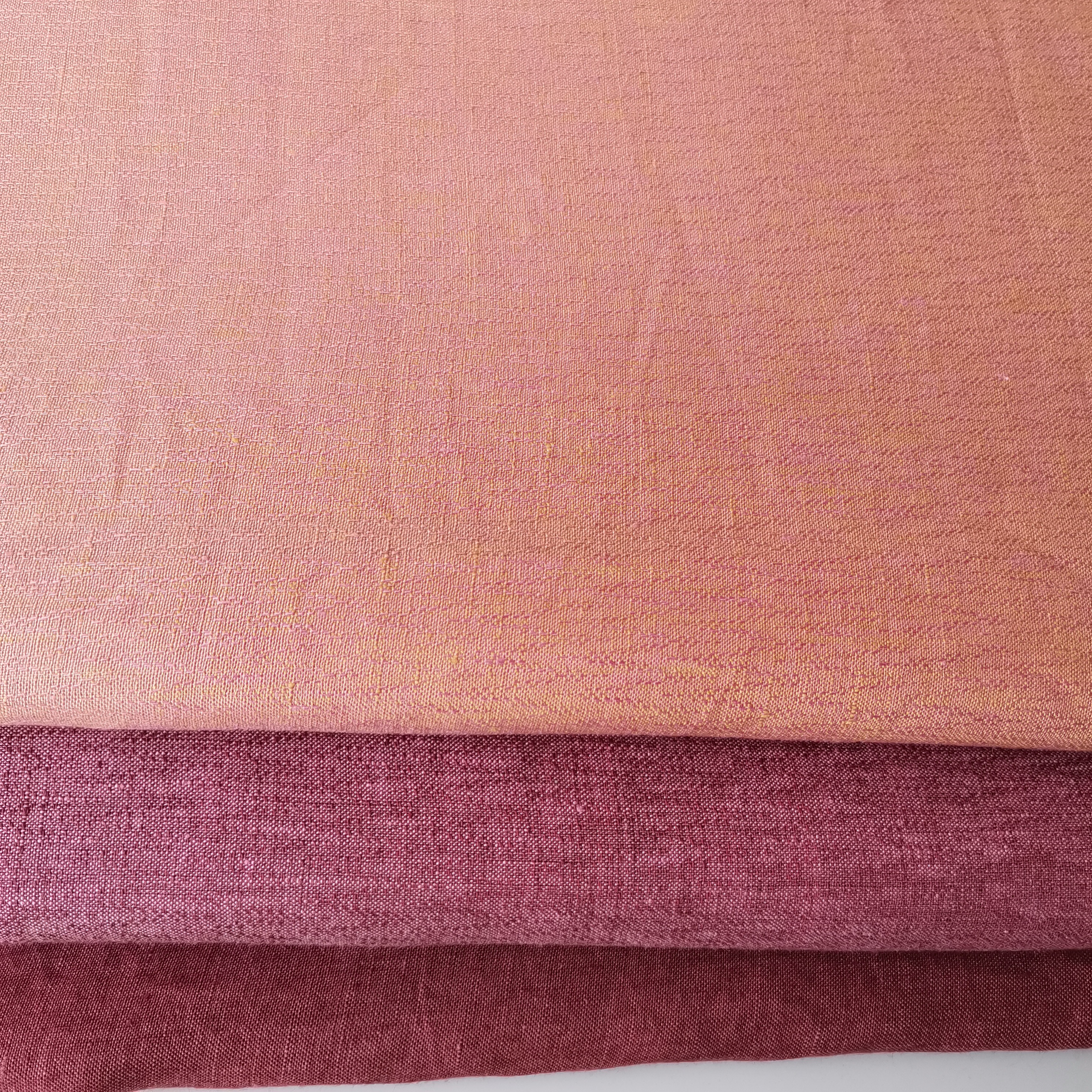 针对定制客户或者服装品牌,推出设计的粉红色系小提花花型,使用欧洲进口亚麻原料,组织结构采用数年生产织造、测试、试穿体验后升级的规格,也可根据来图、来样按需定制花型。悬垂性好,结构紧密而不僵硬,适用于淑女装、时装、职业装、汉服、旗袍定制等。