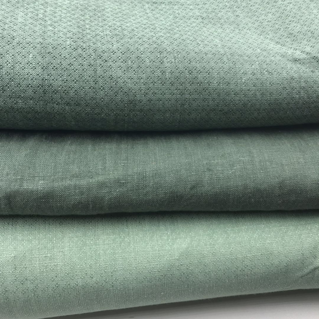 针对高端定制客户或者高端服务品牌,推出设计的淡绿色系小提花花型,风格清新俏皮;使用欧洲进口亚麻原料,组织结构采用数年生产织造、测试、试穿体验后升级的规格,也可根据来图来样按需定制花型;悬垂性好,结构紧密而不僵硬,适用于淑女装、时装、职业装、汉服、旗袍定制等